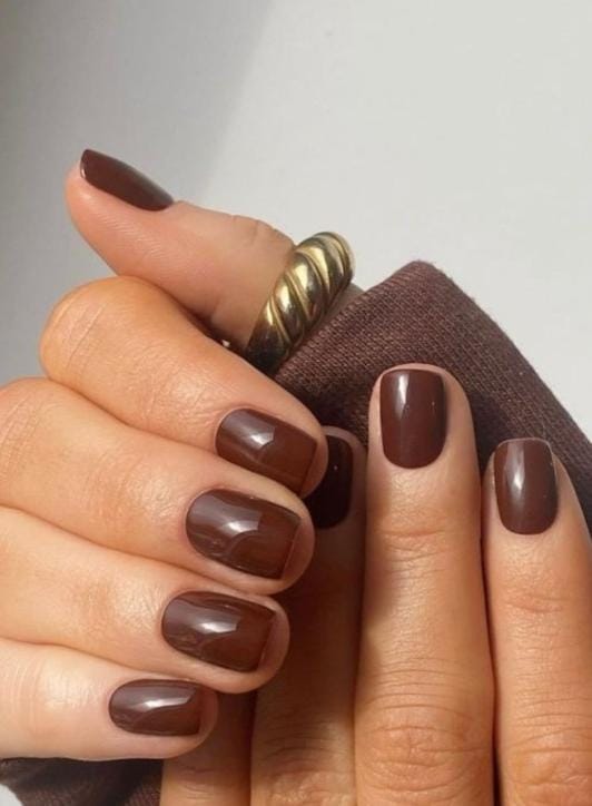 O marrom em subtom quente quebra a ideia de que a cor é exclusiva do inverno, oferecendo uma sofisticação menos óbvia que preto ou nude. Harmoniza com tons terrosos e peças de transição entre dia e noite. Sugere texturas como veludo ou couro leve no styling.