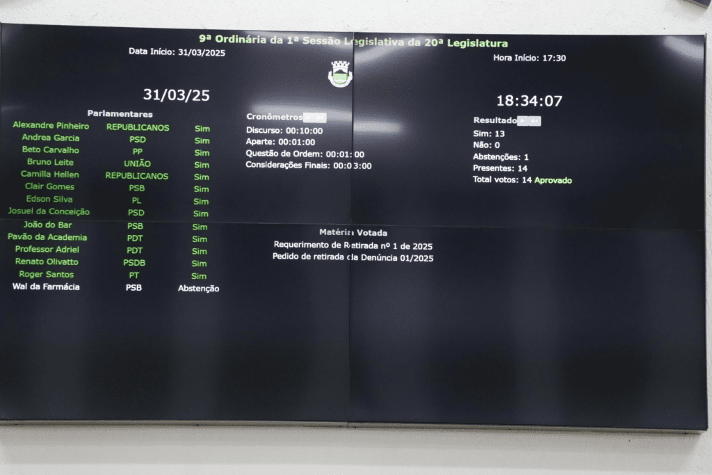Atendendo a uma determinação judicial, o presidente da Câmara, vereador Beto Carvalho (PP), anunciou a suspensão da leitura e votação da Denúncia 1/2025 contra um vereador. A decisão reflete o respeito da Casa Legislativa às decisões judiciais e à legalidade processual.