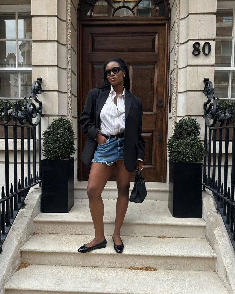 Esqueça a jaqueta jeans! A camisa social pode atuar como a terceira peça do seu look. Para um visual equilibrado, aposte em regatas, baby looks ou bodys em tons neutros e use a camisa aberta por cima. Essa combinação é ideal para looks de verão, especialmente com bermudas de alfaiataria, proporcionando frescor e estilo.