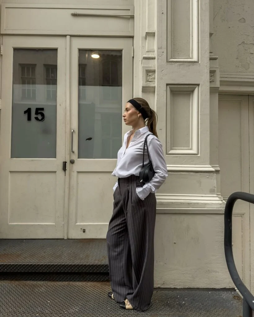 Uma das maneiras mais clássicas de usar a camisa social é combiná-la com uma calça de alfaiataria. Essa combinação é perfeita para reuniões de negócios e eventos formais. Para finalizar o look, opte por calçados clássicos como sapatilhas, mocassins ou scarpins, garantindo um visual profissional e sofisticado.