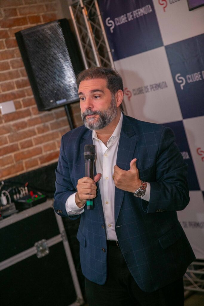 Legenda: O fundador Leonardo Bortoletto fala em recente evento do Clube de Permuta