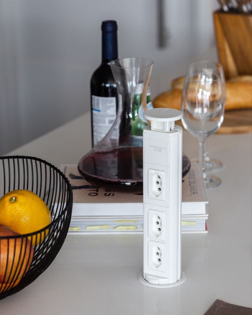 Tomadas embutidas ou retráteis em perfis discretos de alumínio permitem ligar eletrodomésticos portáteis sem comprometer a estética da bancada e aumentam a segurança ao evitar fios soltos.