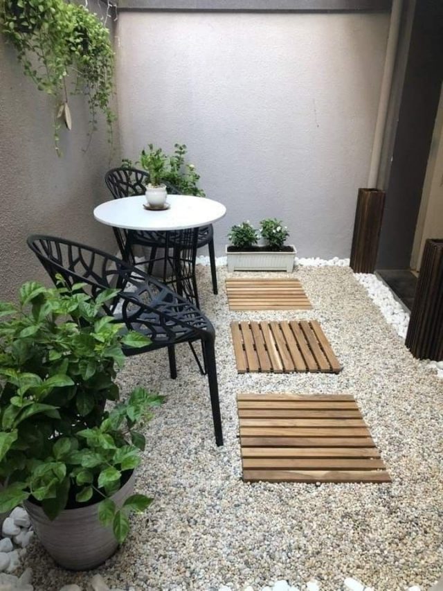 Na hora de escolher o material para o chão do jardim, você pode optar por pedras, seixos, cascalhos ou argila expandida, que ajudam a manter a umidade da terra. Grama sintética ou verdadeira também pode ser utilizada, assim como caminhos de madeira ou lajotas. Misturar diferentes materiais pode resultar em uma estética agradável e interessante.