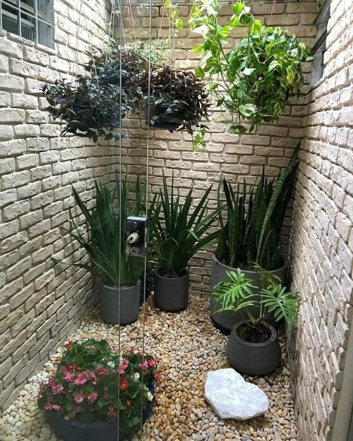 As paredes do jardim podem ser revestidas com ladrilhos, vidro ou outros materiais, sendo recomendável que a porta seja de vidro para que o jardim possa ser admirado. Vale lembrar que existem jardins que podem ser criados sem paredes e portas, permitindo uma integração ainda maior com o ambiente.