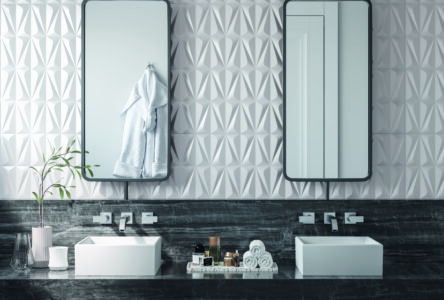 A presença do Cloud Dancer também se estende a revestimentos e acessórios. O revestimento com efeito 3D da série Ludo, da Incepa, aporta sensação de movimento para o banheiro, enquanto a série Risca, também da Incepa, chama atenção pelas linhas desencontradas, acabamento acetinado e visual clean. Na iluminação e complementos, os produtos da Yamamura Collection ressaltam design moderno, como o pendente Balloon, de 50 cm x 24 cm, indicado para salas, dormitórios ou varandas. Em banheiros, a cuba de apoio Celite Slim privilegia um design minimalista que favorece ambientes mais acolhedores e delicados, criando sintonia com momentos de autocuidado.