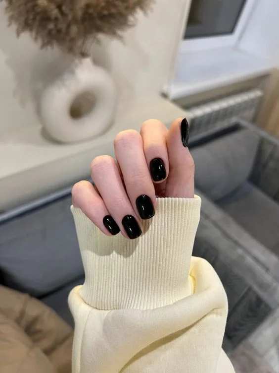 Dica de estilo: Experimente combinar o esmalte preto com um toque de glitter dourado na ponta das unhas para um look noturno deslumbrante.