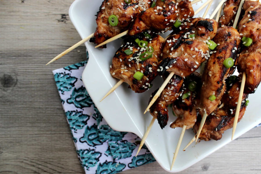 - Grelhe os espetos por 12 a 18 minutos, com a tampa da churrasqueira fechada, virando-os na metade do tempo.