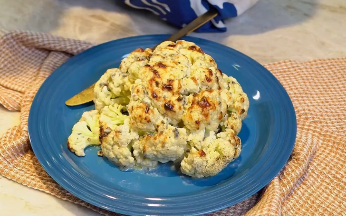 Esta versão traz um toque gratinado em vez da tradicional crocância. Cozinhe a couve‑flor até ficar al dente, porque ela continuará o cozimento na airfryer.