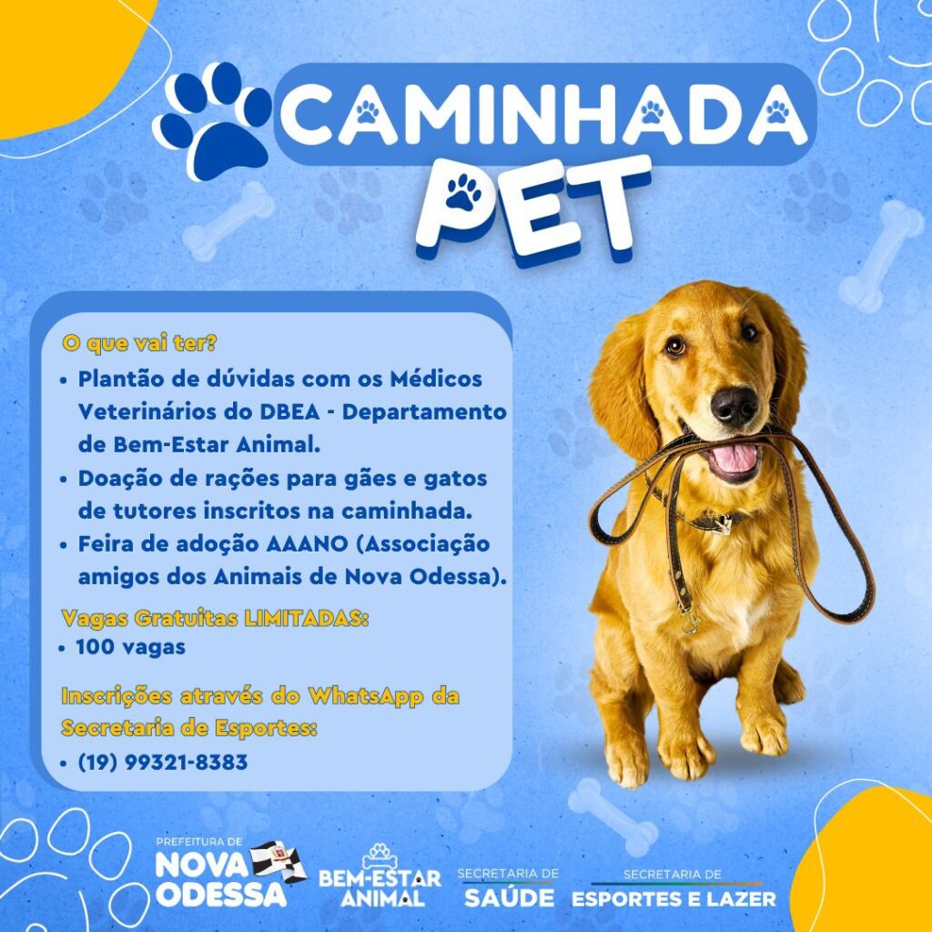 O secretário de Esportes e Lazer de Nova Odessa, Renan Reis, enfatiza que “a ‘Caminhada’ será um momento especial de interação entre tutores e seus pets, promovendo qualidade de vida”. Ele acrescenta que, com o apoio do Departamento de Bem-Estar Animal, a intenção é não apenas incentivar a prática esportiva, mas também oferecer orientações sobre cuidados com os animais.