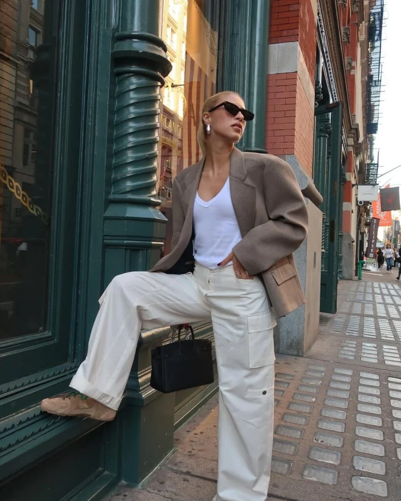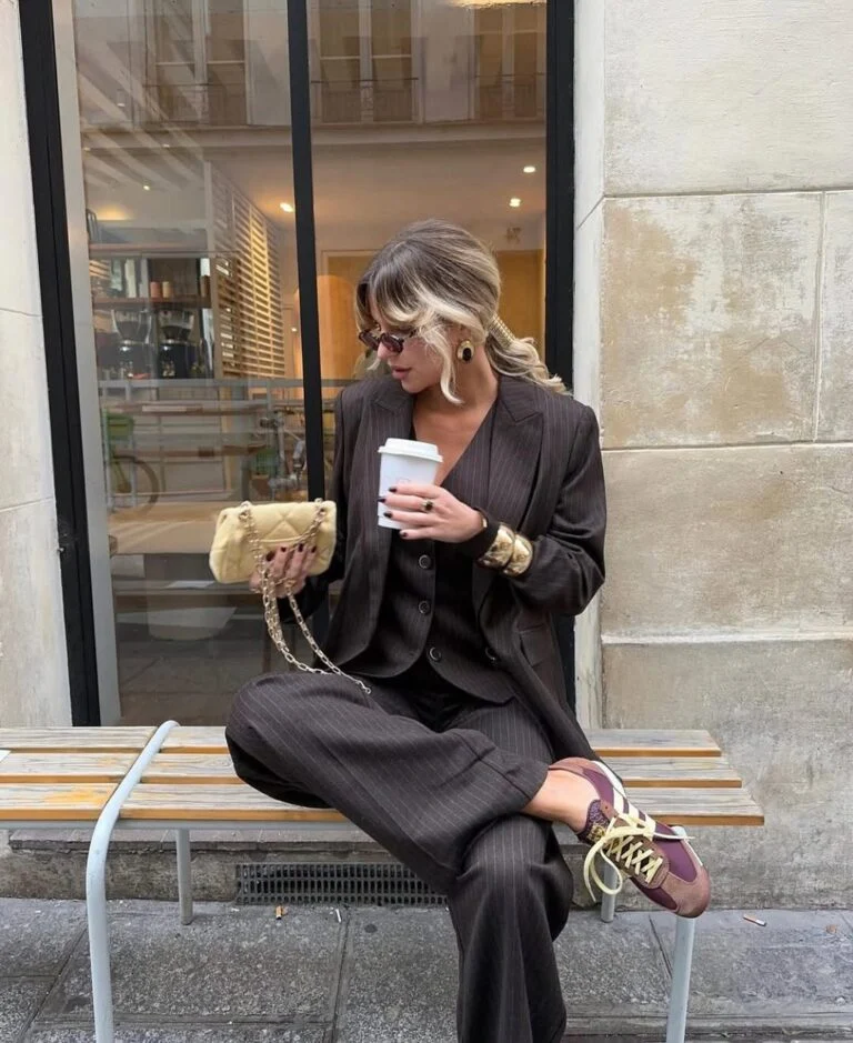 Uma das maneiras mais sofisticadas de usar tênis no ambiente profissional é combiná-los com peças em tons neutros — bege, branco e marrom. Por exemplo, um blazer elegante pode quebrar a casualidade do tênis, criando um visual equilibrado e adequado para escritórios que exigem um dress code mais formal.