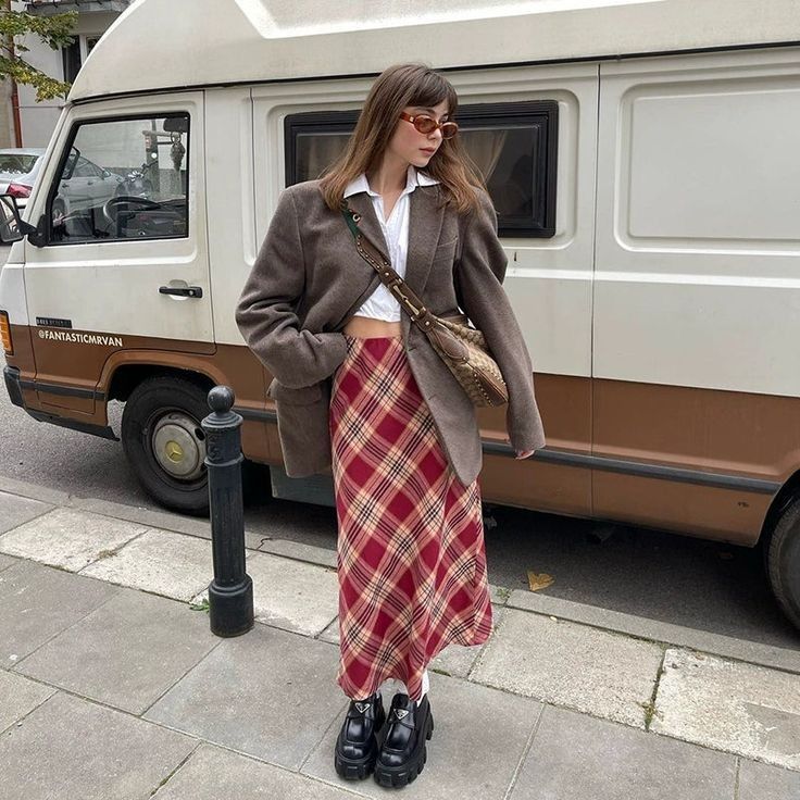 2 – Mocassim com saia midi xadrez