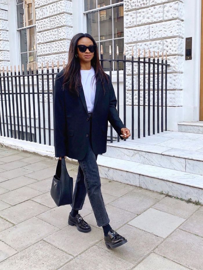 3 – Mocassim com calça jeans reta e blazer