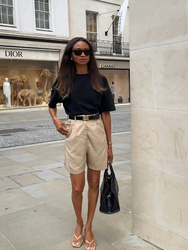 Combine comprimentos e larguras para manter a proporção: bermudas mais curtas pedem tops mais recatados; bermudas na altura do joelho funcionam bem com blusas levemente ajustadas.