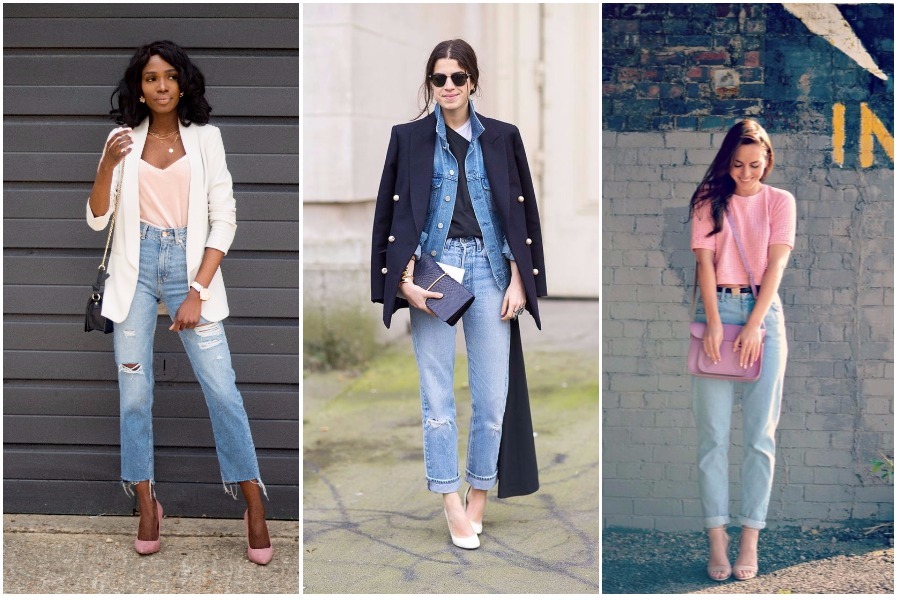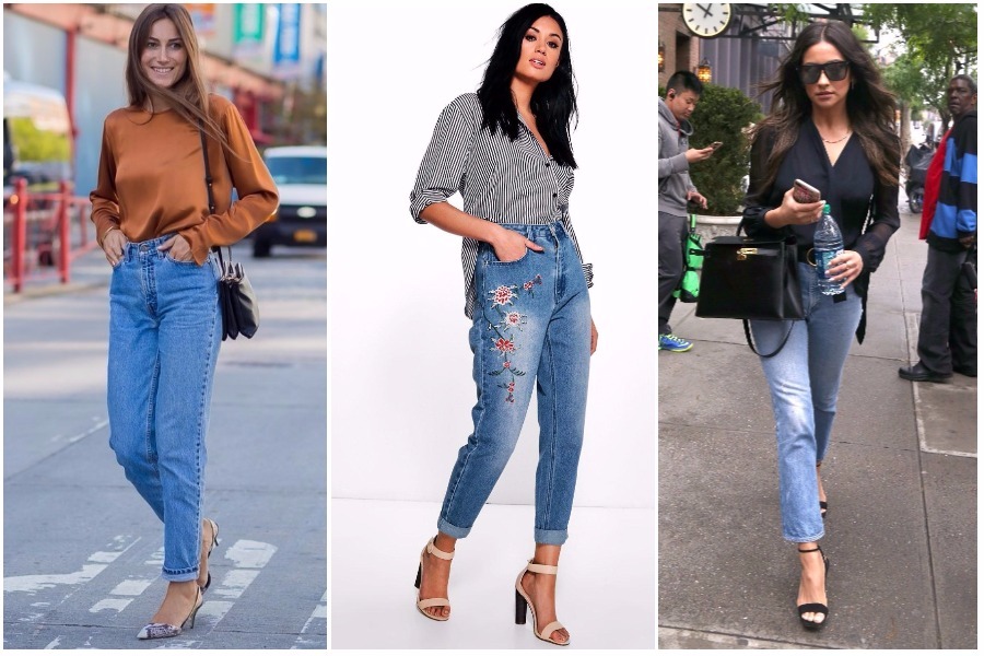 Se a modelagem mais larguinha do mom jeans te deixa na dúvida, a combinação com saltos finos é a solução. Eles alongam as pernas e trazem um toque de elegância.