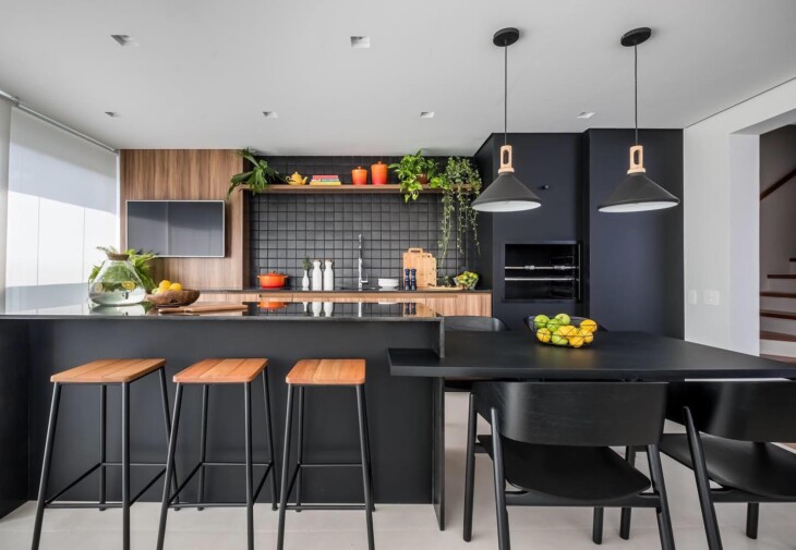 Uma área gourmet completa deve incluir mais do que apenas a churrasqueira. Uma bancada de apoio é essencial para o preparo das refeições, assim como uma pia para a higienização de utensílios e alimentos. Um pequeno refrigerador, frigobar ou cervejeira facilita o acesso a bebidas e a outros itens que precisam de refrigeração.