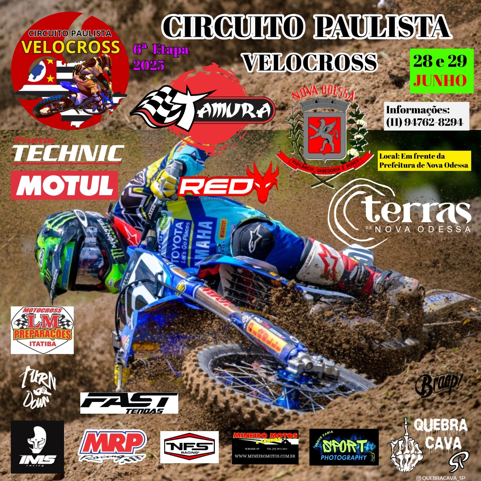 A 6ª Etapa do Campeonato Paulista de Velocross 2025 acontece em Nova Odessa nos dias 28 e 29 de junho, reunindo 218 pilotos de mais de 60 cidades de São Paulo e Minas Gerais, com entrada gratuita e festival gastronômico.