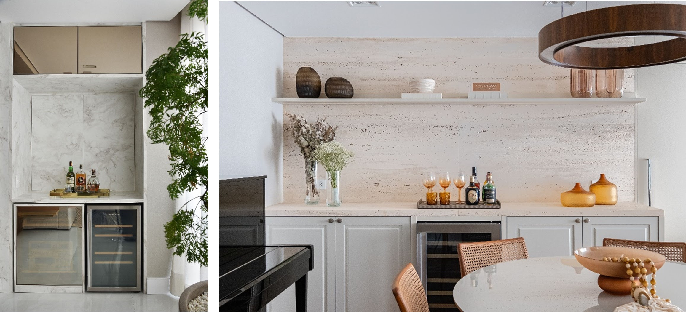 O bar residencial tem ganhado espaço como símbolo de bem-estar e hospitalidade, seja para receber amigos ou desfrutar momentos a dois, agregando valor e personalidade ao lar.