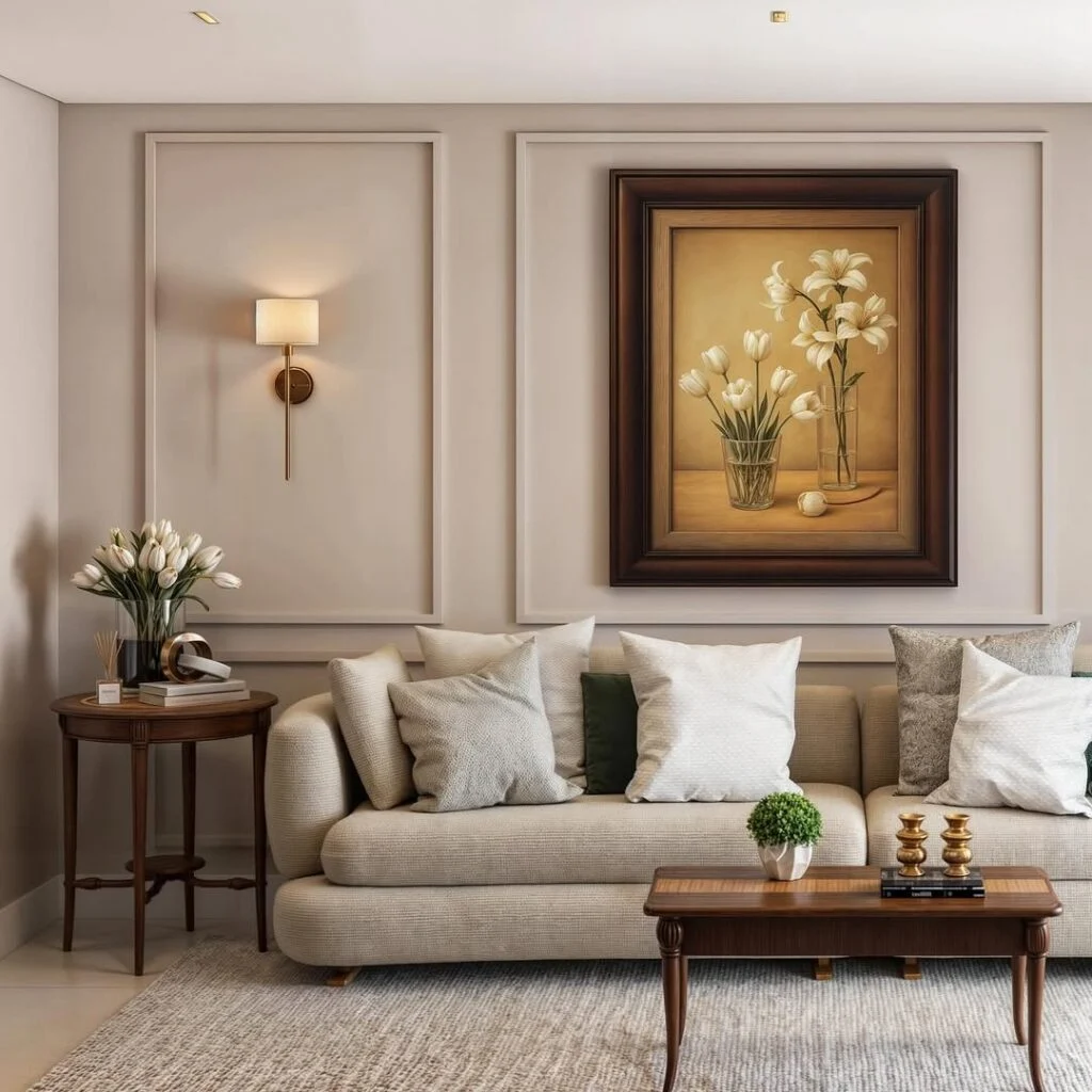 - Proporção: em sofás largos, use duas mesas laterais iguais ou pareadas; em espaços reduzidos, opte por uma mesa pequena e alta.