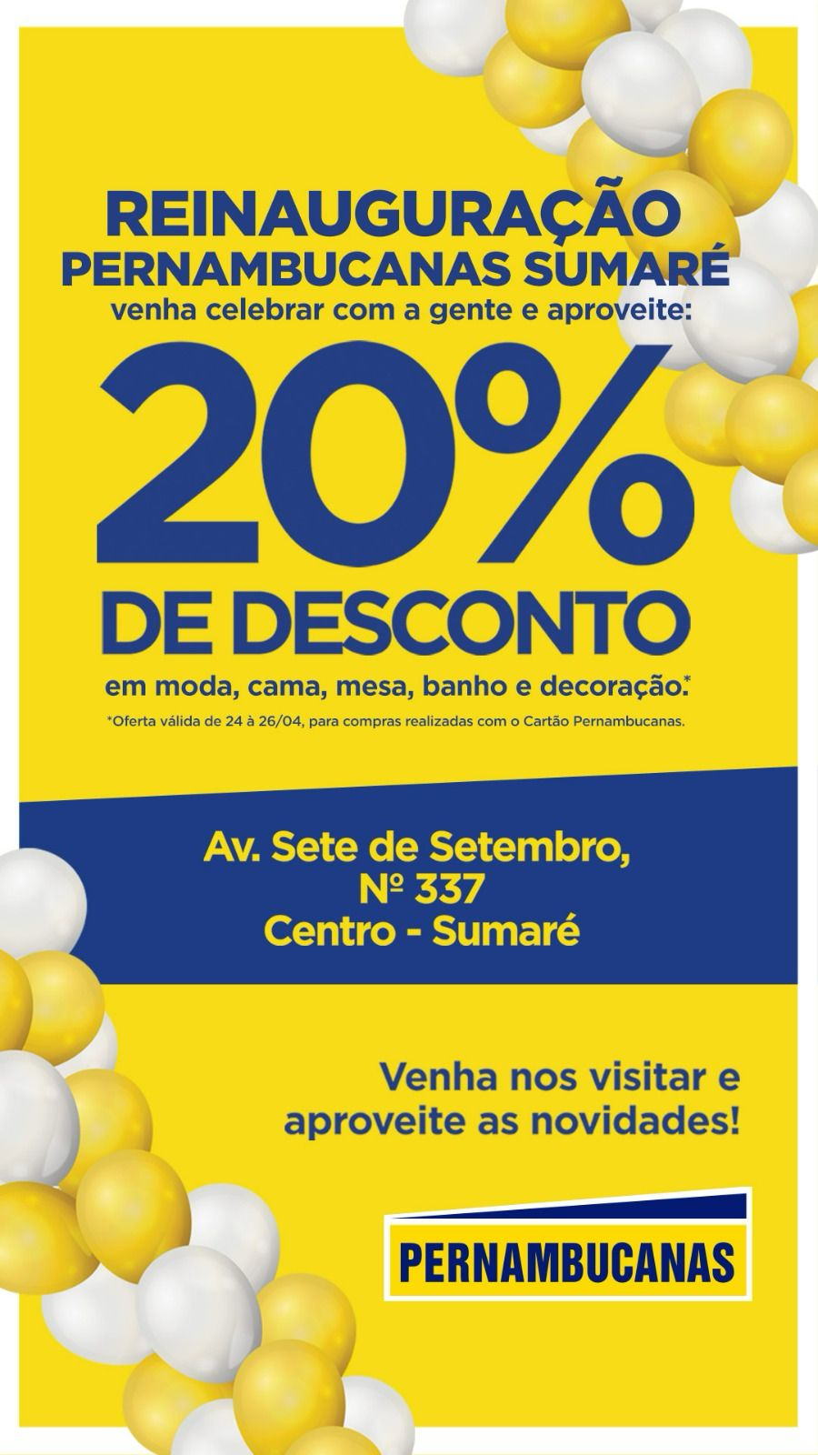 A Pernambucanas de Sumaré, localizada na Avenida 7 de Setembro, reinaugurou sua loja com um ambiente renovado e descontos de 20% em todas as seções até o próximo sábado, 26 de abril. A nova fase promete uma experiência de compras ainda mais agradável para os moradores da região.