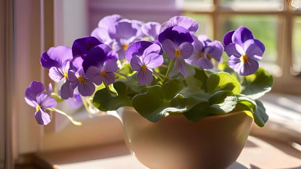 As violetas adoram luz indireta e precisam ser regadas uma vez a cada dois ou três dias. Com cuidado e carinho, elas retribuem com flores durante todo o ano.
