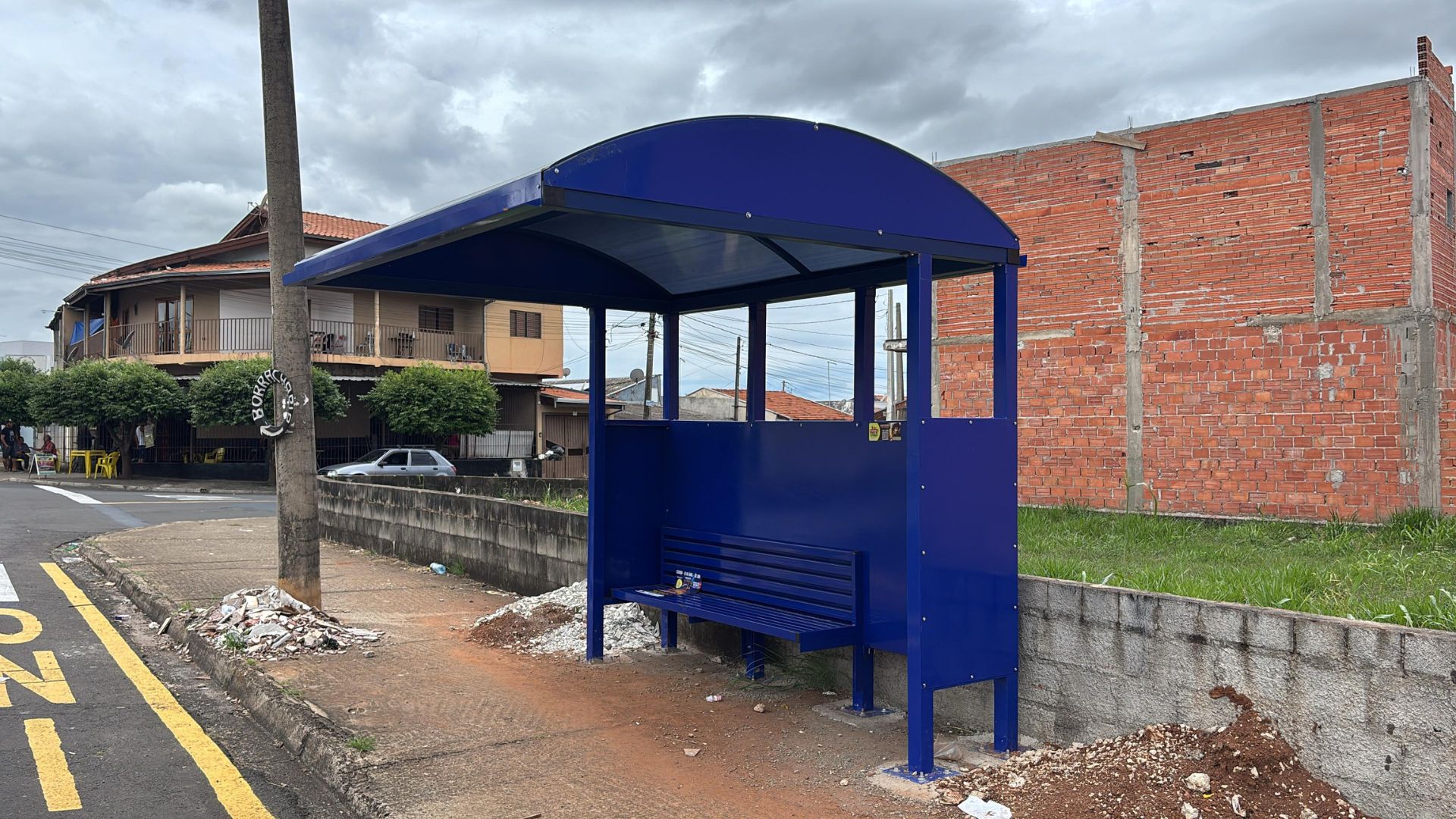 O vereador Oséias acompanhou presencialmente a instalação de alguns dos novos pontos, que contam com bancos e coberturas e são feitos de aço carbono, com cobertura em policarbonato. Assento em aço e painel traseiro institucional em chapa de aço.