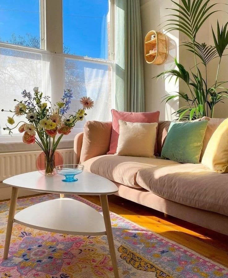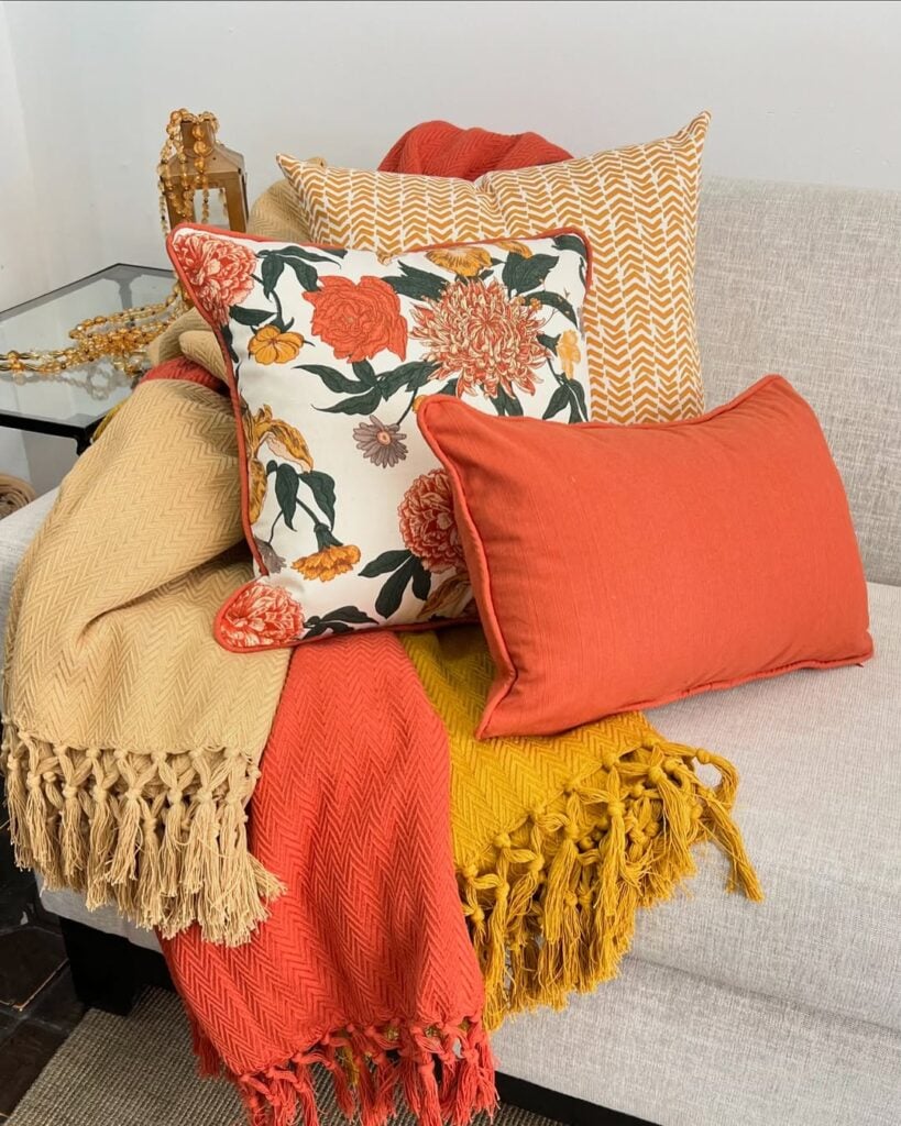Aposte em capas de almofadas, mantas e cortinas em tons claros ou estampas florais para um impacto rápido e visual. Cores como verde, amarelo, lilás e rosa remetem à natureza e trazem um toque vibrante e acolhedor aos ambientes. Trocar tecidos pesados por linho e algodão reforça a sensação de leveza e conforto térmico.