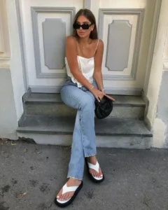 Por fim, sabe quando o outfit está muito chique e precisamos dar uma equilibrada no visual? A sandália flatform é perfeita para isso! Você pode usá-la com vestidos e saias sociais em eventos casuais. O mesmo vale para um look com blazer e calça de alfaiataria.