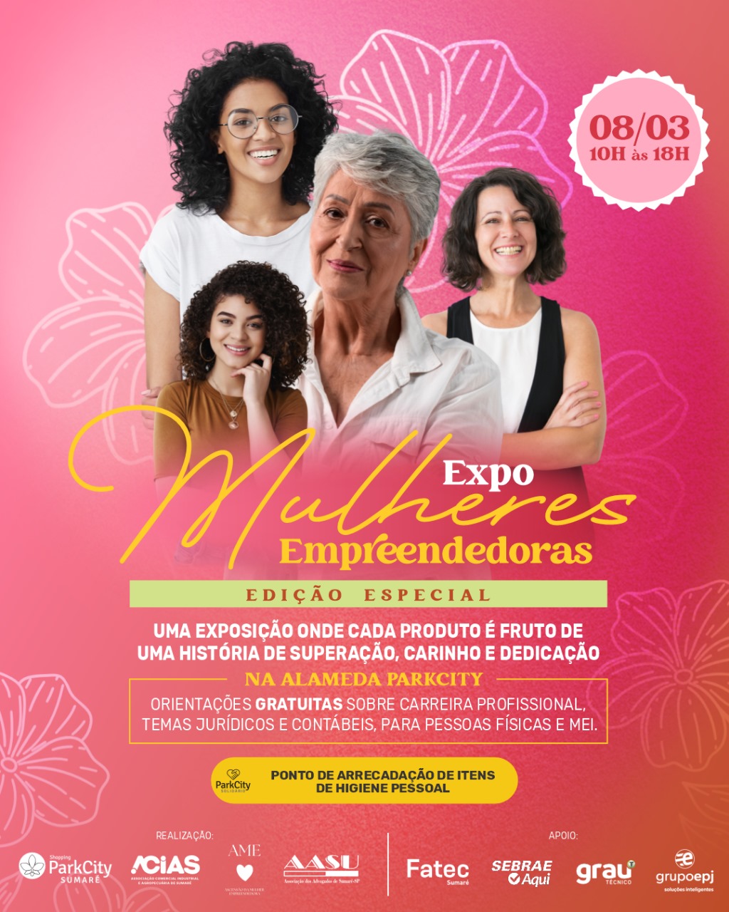 O Shopping ParkCity Sumaré dará início às comemorações do Dia Internacional da Mulher com a Expo Mulheres Empreendedoras – Edição Especial, marcada para o dia 8 de março, sábado. A programação incluirá uma série de atividades que destacam o empreendedorismo feminino, com visitação gratuita.
