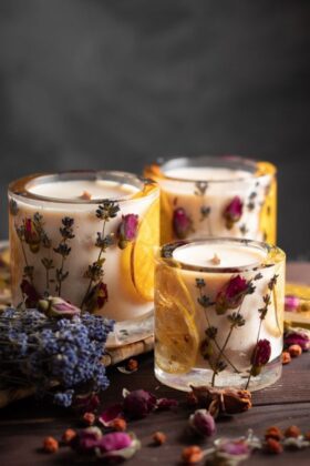 Flores secas podem ser incorporadas em velas ou sachês aromáticos, oferecendo uma opção criativa para decorar a casa e até presentear alguém.