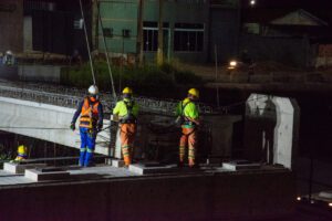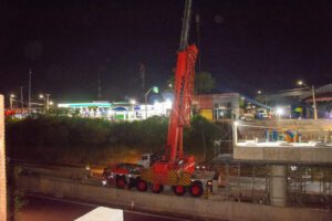 A Prefeitura de Hortolândia continua a avançar na construção do viaduto sobre a rodovia SP-101. A obra está em uma etapa importante, com o içamento de vigas realizado na noite desta segunda-feira, 16 de dezembro. A empresa contratada pelo município optou por realizar o serviço no período noturno para não atrapalhar o fluxo de trânsito na rodovia durante o dia.