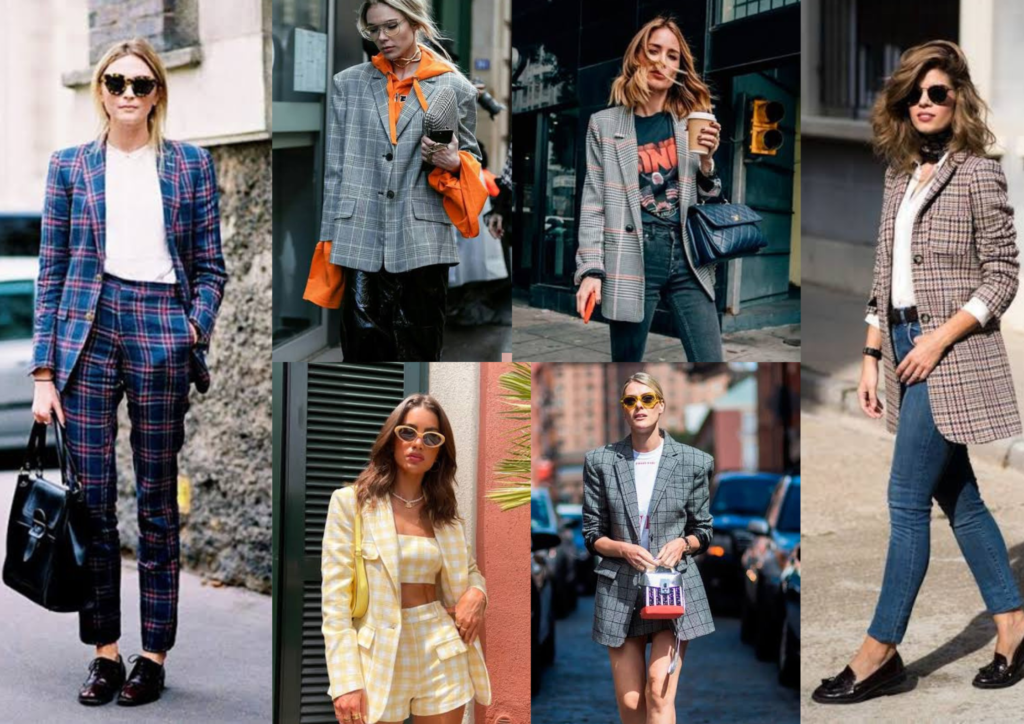 Dica extra: Para um look poderoso e cheio de personalidade, aposte em um conjunto de blazer e calça xadrez.