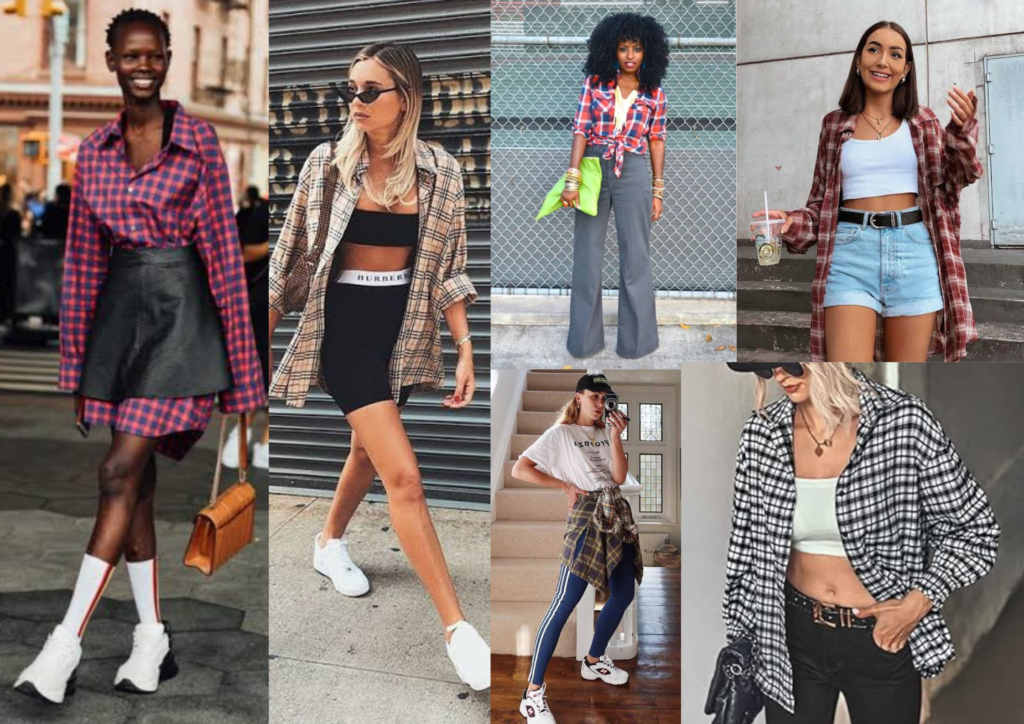 Dica extra: Para um visual mais feminino, combine a camisa xadrez com uma saia jeans e tênis brancos.